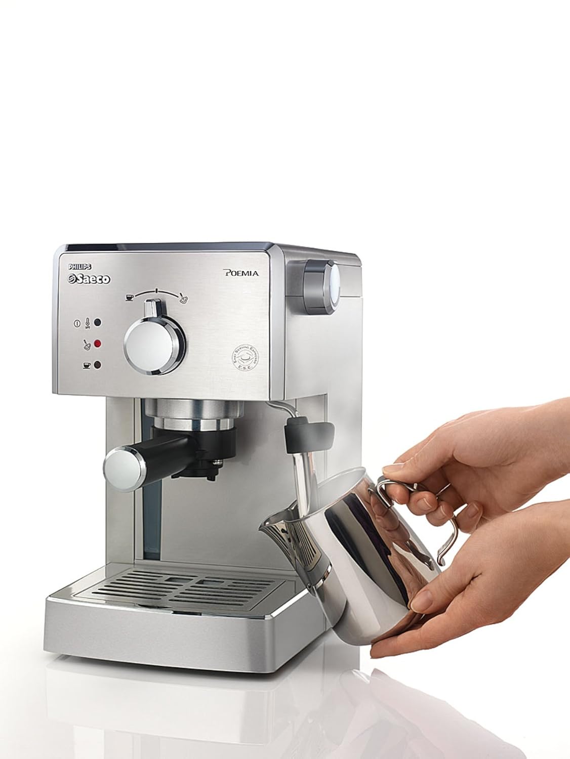 Saeco Poemia Inox HD8427/11 - Máquina de café espresso manual para café molido y monodosis E.S.E., 950 W, color plateado